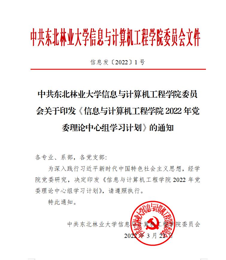 中共sunbet申搏信息与计算机工程公司委员会关于印发《信息与计算机工程公司2022年党委理论中心组学习计划》的通知