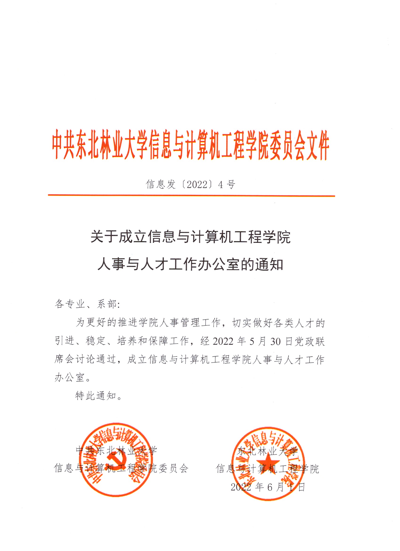 关于成立信息与计算机工程公司人事与人才工作办公室的通知