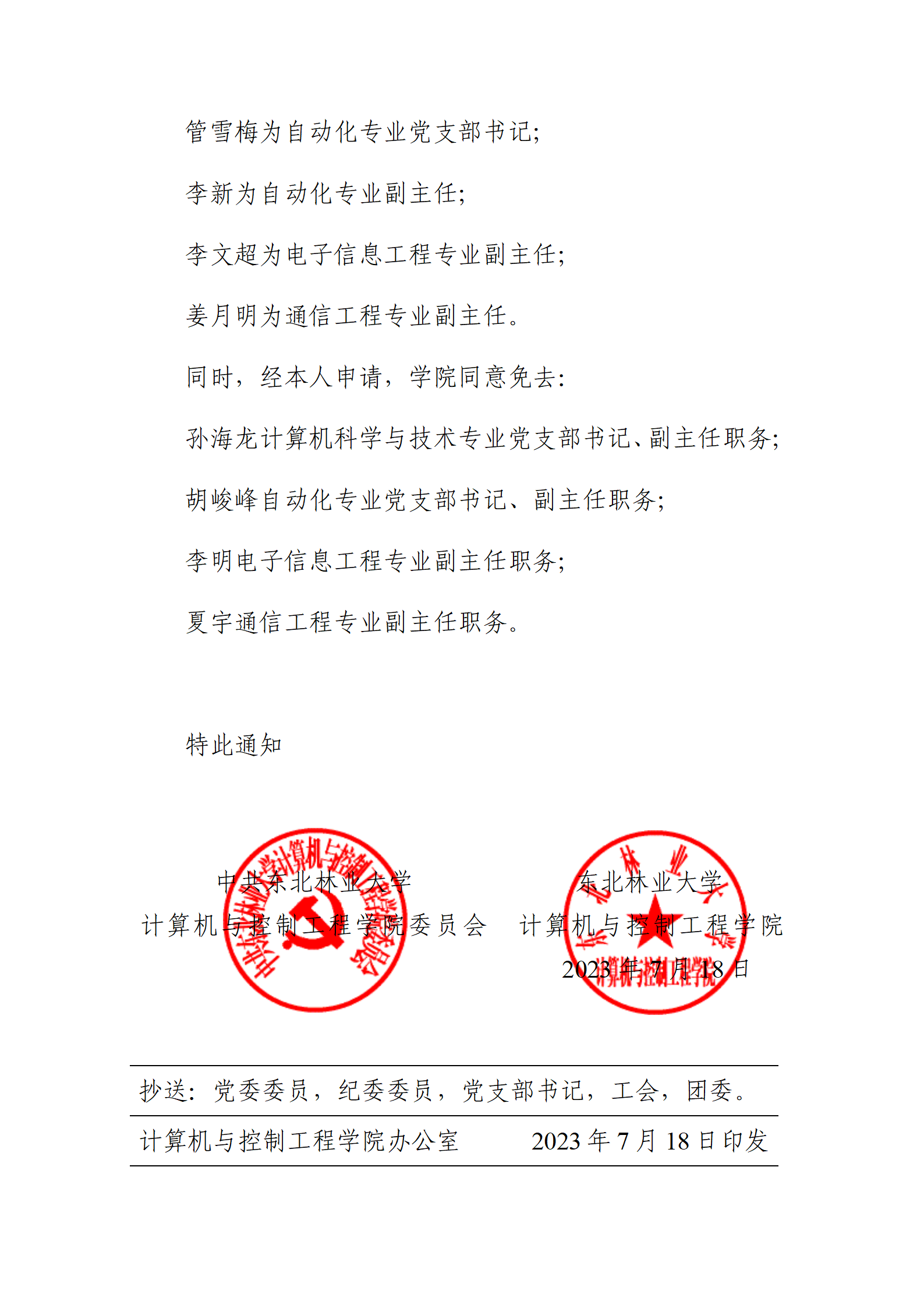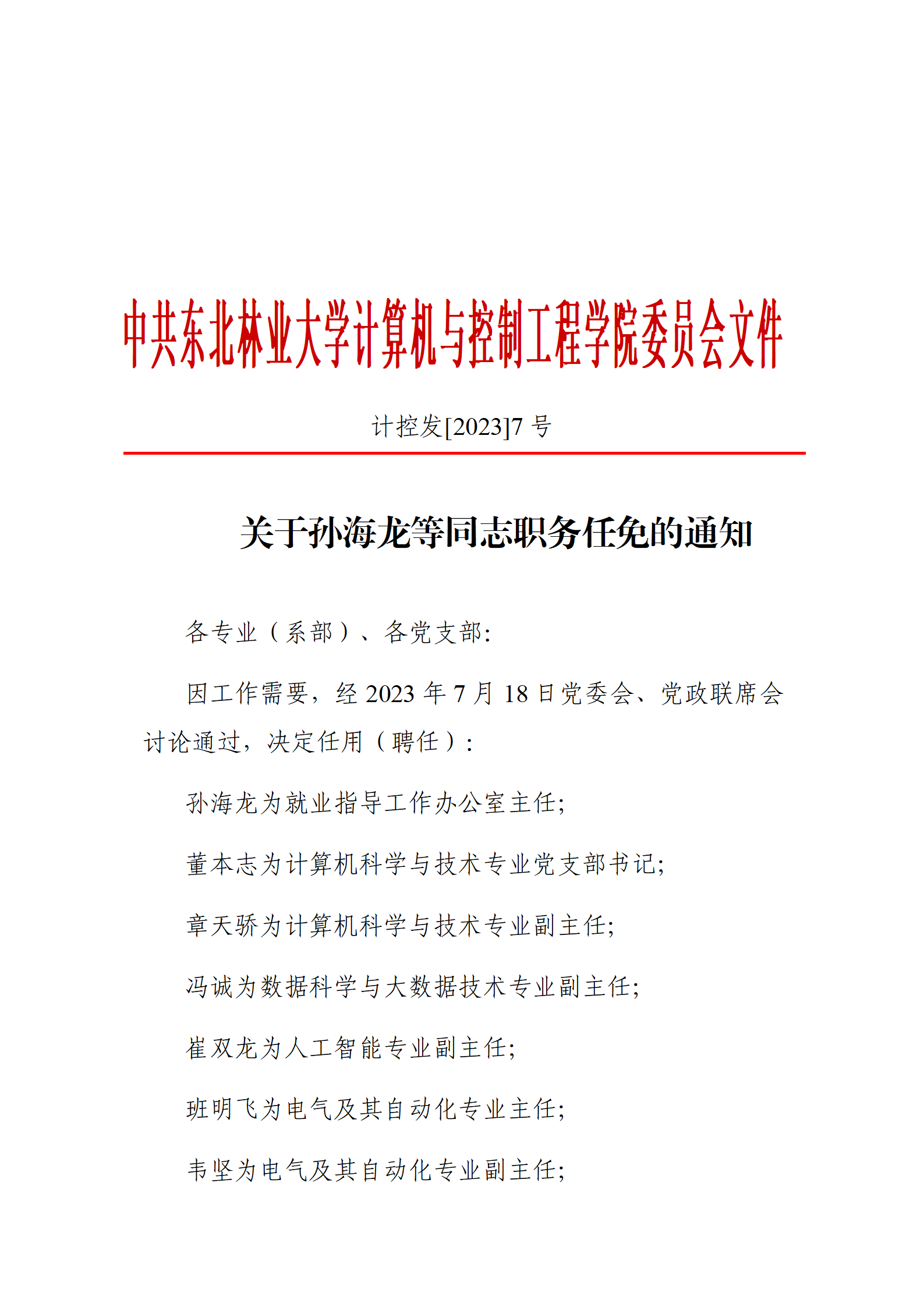 关于孙海龙等同志职务任免的通知