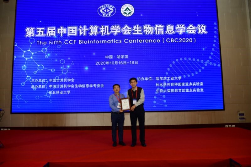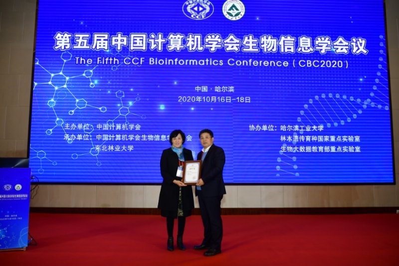 大会邀请美国弗吉尼亚大学张爱东教授、复旦大学周水庚教授、哈尔滨工业大学王亚东教授、哈尔滨医科大学李霞教授、中山大学戴道清教授、沙特阿卜杜拉国王科技大学高欣副教授、华中农业大学副董事长严建兵教授分别就癌症预测与元学习、因果推断与致病基因检测、生物医学大数据挖掘和精准医学、面向疾病的数据分析集成策略、面向精准医疗的基因组学分析方法、大数据驱动的玉米数量遗传学研究等问题做了特邀报告。同时,西安电子科技大学高琳教授、同济大学黄德双教授、北京建筑大学郭茂祖教授、中国科公司计算所张法教授代表CCF生物信息学专委会分别向做大会特邀报告的专家颁发感谢证书。