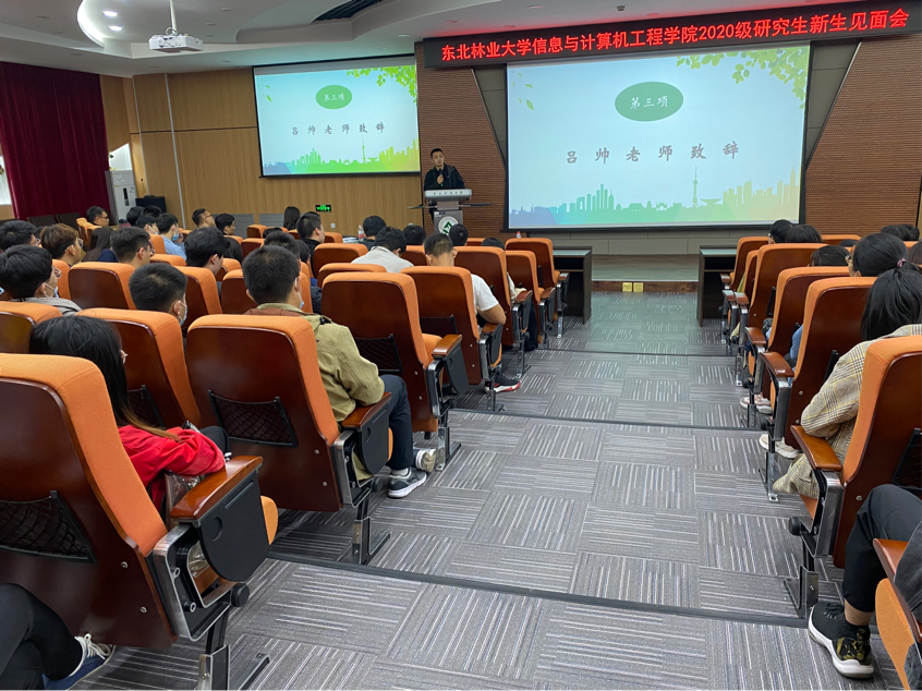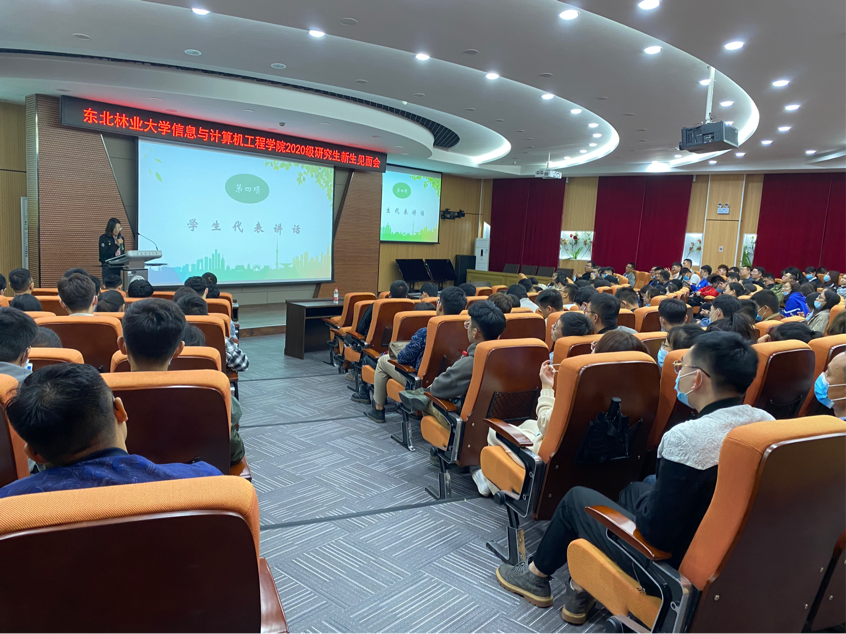 2018级管理科学与工程专业张家琪作为优秀研究生代表进行了发言。她表示很高兴信息研究生又融入了新的血脉。同时也分享了自己在东北林业老员工活7年的点点滴滴,勉励新同学积极主动学习、努力提高专业技能。并希望每一位同学都能坚持自己的选择,耐得住寂寞,勇于担当,在激情奋斗中绽放青春光芒,成为新一代有理想、有抱负的信息人!