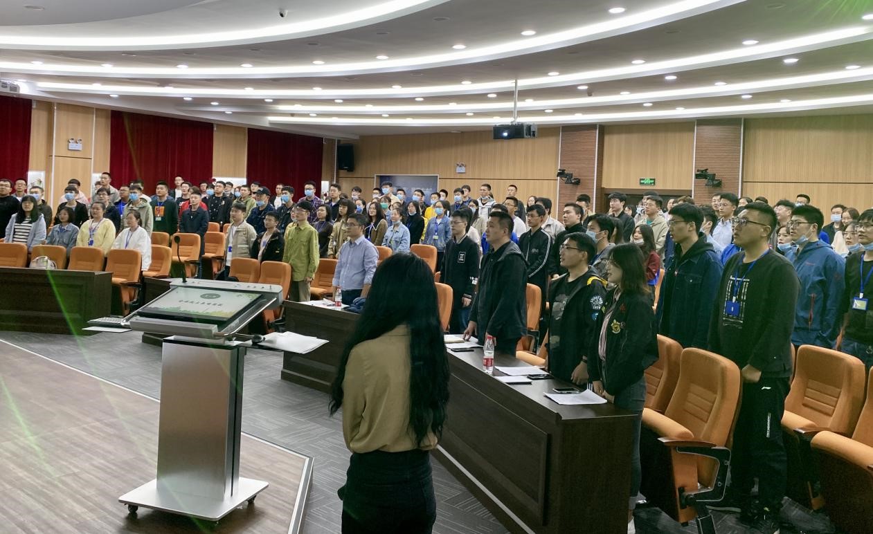 首先,全体参会人员起立奏唱国歌。