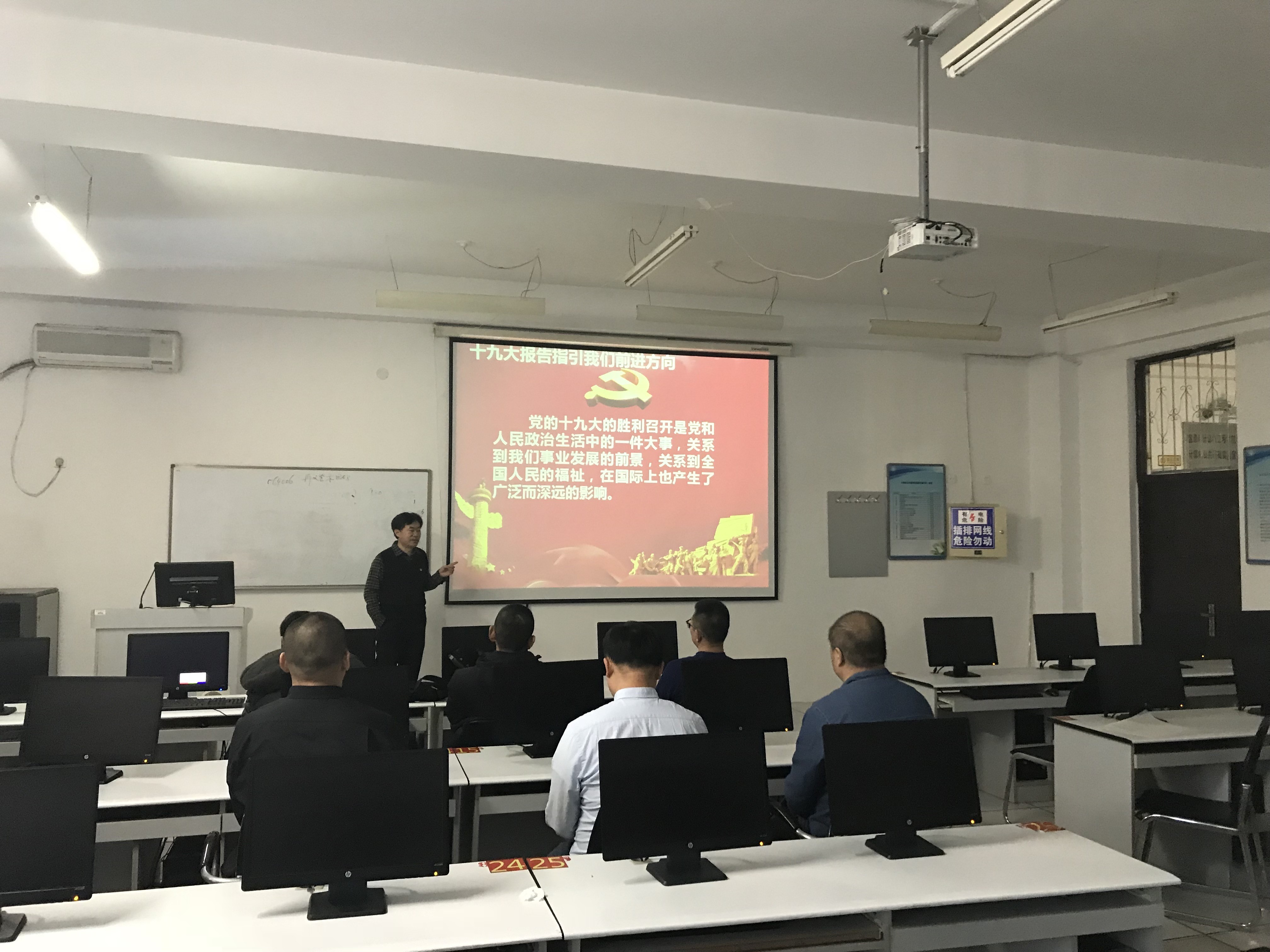 12月21日下午,实验中心党支部在书记郭继峰同志带领下,进行了题为“十九大报告指引我们前进的方向”的党课学习活动。