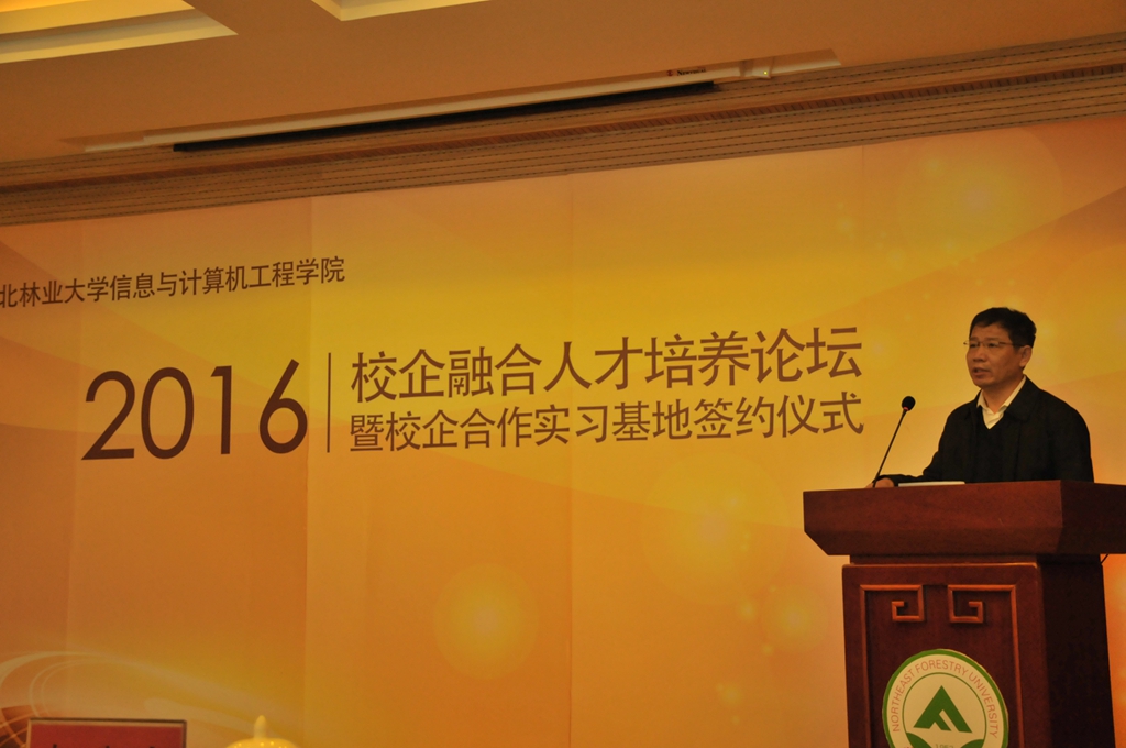随后,陈广胜经理代表信息公司对合作企业长期以来的支持和关心表示衷心感谢,并介绍了公司概况和“3+1人才培养模式”,他表示要办好一个专业,光有好的硬件设施是远远不够的,要从根本上提高人才培养质量,深化专业内涵建设,必须要把理论知识和实践教学结合起来,这不仅是高等公司人才培养目标所以决定的,而且也是IT行业注重实际动手能力所决定的,他希望通过本次校企合作,探索出一条适合公司发展、融入行业需求、服务社会发展的特色人才培养道路,实现公司、企业和员工三方共赢的局面。