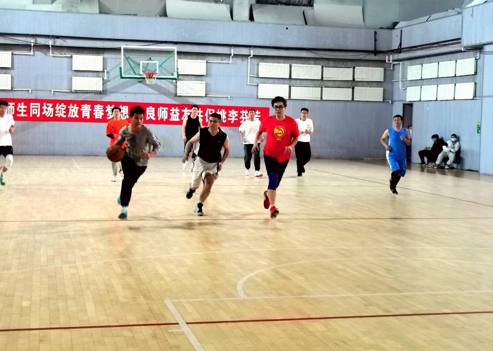 双方队员入场,进行了简短的自我介绍,师生们在紧张又快乐的氛围下发挥着各自的优势,员工们以快为王、充分展现了个人能力,教工们以稳求进、发挥团队配合优势,最终4节比赛结束以74:58的比分教工队伍取得胜利。