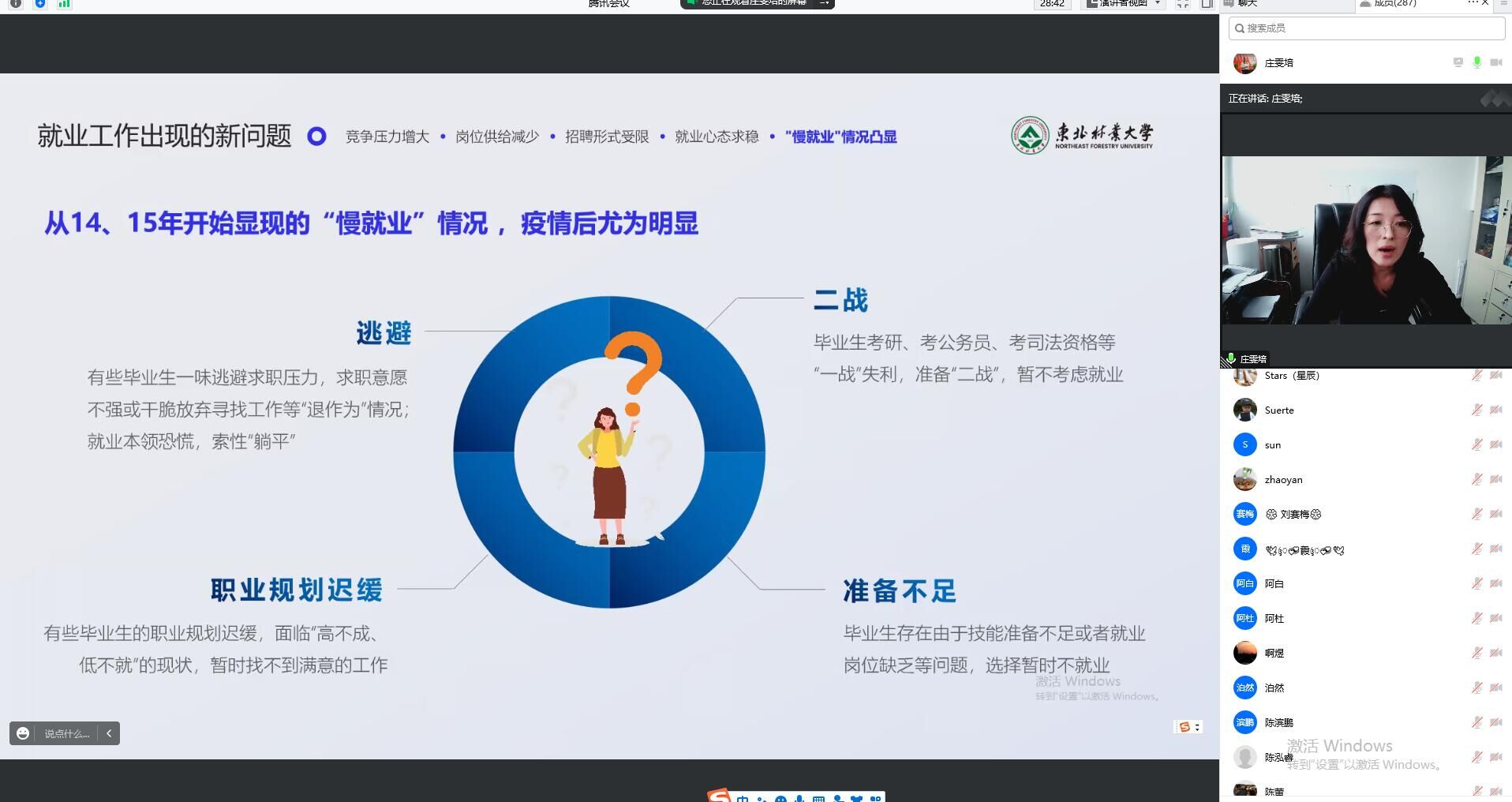 针对就业,庄书记从“秋招与春招的异同点”、“紧抓机遇、合理预期”等方面为各位家长做了详细讲解,建议家长多与员工沟通,了解员工就业意向,建立合理目标,挖掘多方资源,抢抓就业机遇。