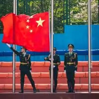 方阵检阅完毕后,举行了庄严而又隆重的升旗仪式,全体师生面向国旗肃立致礼。伴随着激昂的《义勇军进行曲》,师生们注视着五星红旗冉冉升起,在熠熠晨光中迎风飘扬。
