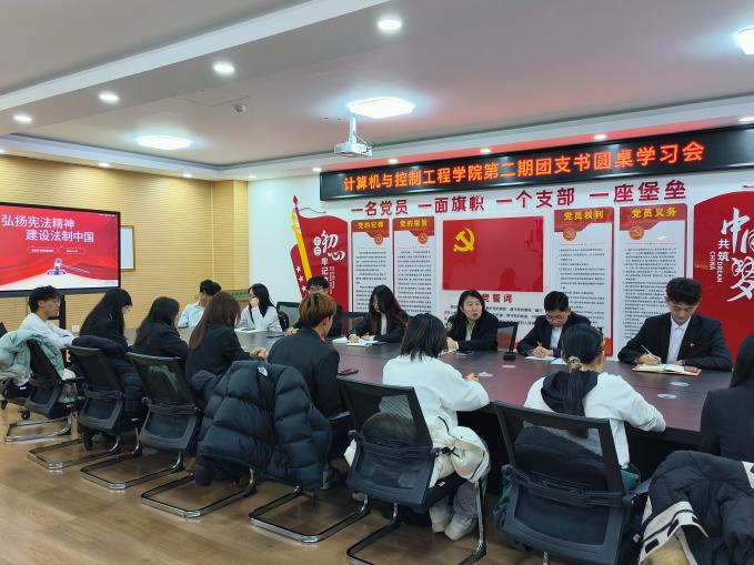 2023年11月29日下午成栋楼926会议室,sunbet团委召开第2期团干圆桌学习会,团委书记张音、常务副书记孙慧杰、副书记王仕通、副书记周树森、全体2022级团支部书记和部分团委员工干部参会。会议由副书记王仕通主持。