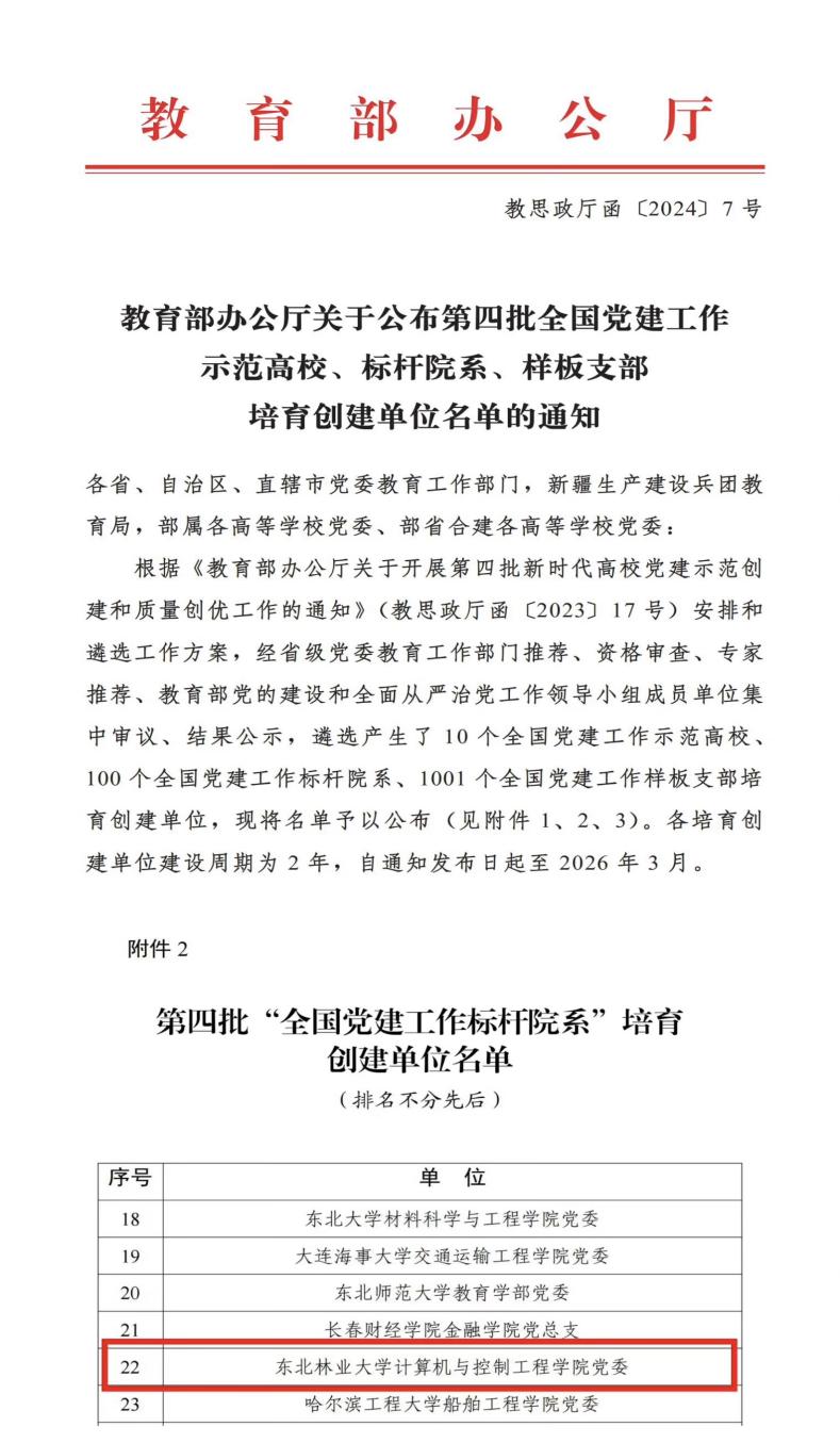 日前,教育部公布了第四批新时代高公司党建示范创建和质量创优工作遴选结果,sunbet申搏sunbet党委获批第四批“全国党建工作标杆院系”培育创建单位。