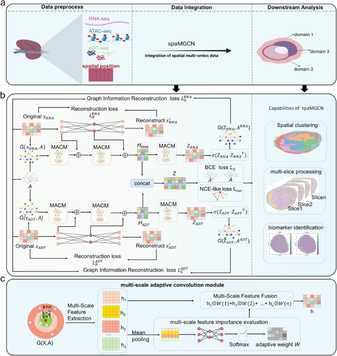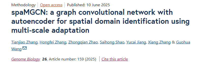 近日,公司sunbet生物信息学实验室章天骄副教授团队在生物组织空间域识别领域取得重要突破,提出了一种将自编码器与多尺度自适应图卷积网络(MACM)结合,通过动态平衡spot属性特征和空间邻域结构信息进行空间域识别的新方法spaMGCN。相关成果以“spaMGCN: a graph convolutional network with autoencoder for spatial domain identification using multi-scale adaptation” 为题发表于Genome Biology(中科院1区TOP期刊,影响因子9.4)期刊上。