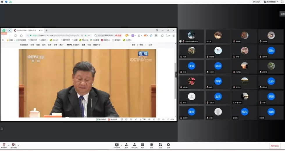 计算机科学与技术系党支部组织专业全体教师通过腾讯会议以线上方式集体收看辛亥革命110周年纪念大会。通过观看,专业教师们深深感受到辛亥革命的胜利是来之不易的,是当时的有志青年抛家舍业,抛头颅洒热血,以牺牲自我的奉献精神换来。110年来,一代又一代的有志青年,将个人的命运融入民族独立、人民解放、改革开发、国家强盛的滚滚洪流中,用青春和热血书写了壮丽的历史篇章。作为新时代的教师,应该紧紧团结在以习近平同志为核心的党中央周围,全面贯彻立德树人根本任务,工作上踏踏实实、脚踏实地,业务上孜孜以求、精益求精,为社会主义现代化建设培育人、育好人。