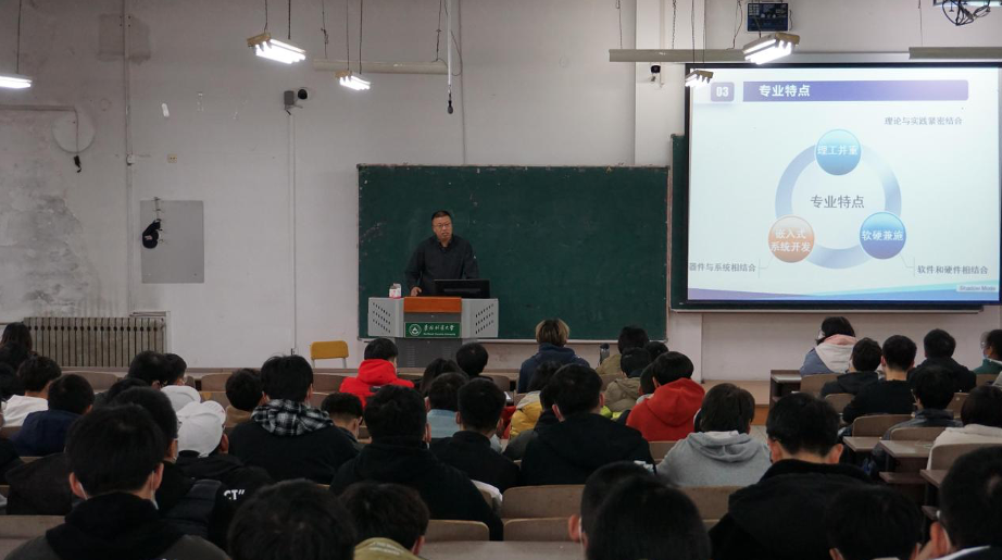 最后,计算机科学与技术专业专业主任、副教授,董本志老师,以老员工先成人后成才为根本,为同学们讲解无论选择什么专业,自身的努力程度,与对未来的把握才是根本,只有不断进取,才能在未来的人才市场占有一席之地。