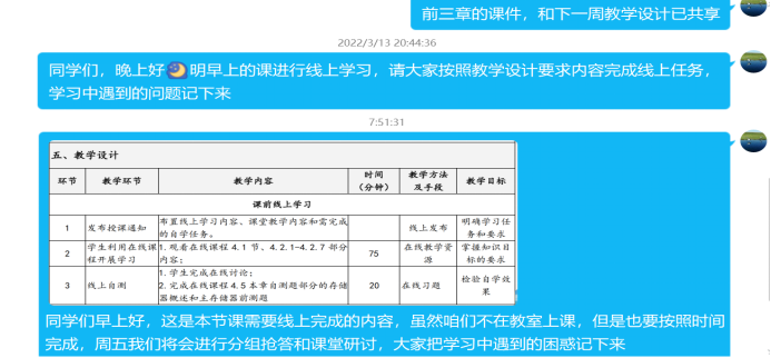 布置线上学习内容、课堂教学内容和需完成的自学任务。 |