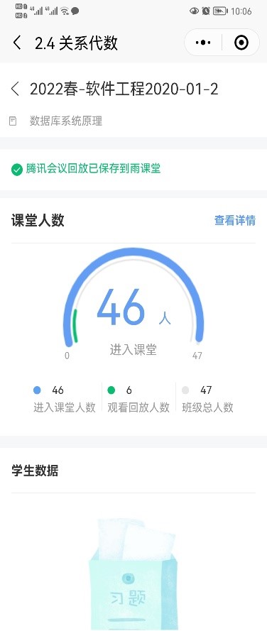 自2022年3月14日以来,为了防止疫情蔓延,校园采取封闭管理,教学工作全部改为线上教学。为了保证线上教学质量,我们做了充足的准备工作。数据库系统原理课程是计算机类专业重要的平台课程,为了实现线上线下教学实质等效,课程组经过多次研讨,结合课程的特点,在已有教学资源及教学经验的基础上,整合多个线上教学平台,充分发掘各教学平台的优势,提出了雨课堂+腾讯会议+超星的线上教学模式,并辅以问题驱动、案例教学、课堂研讨、翻转课堂等教学方法。实现了培养员工的数据库系统的理论和实践能力的教学目标。
