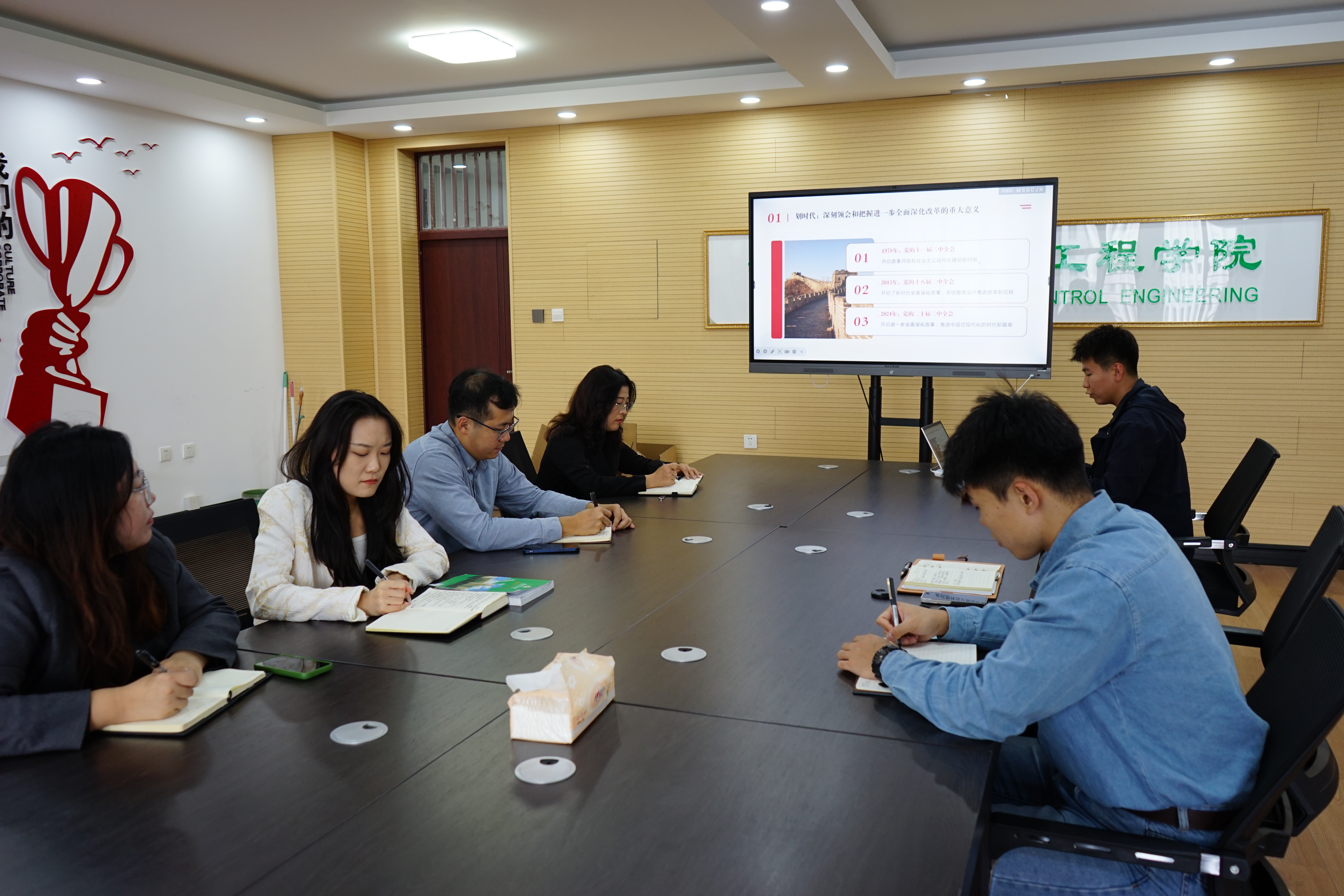 集体学习后,在场辅导员结合实际工作发表了自己的理解和体会。会议最后,庄雯培强调,要准确把握二十届三中全会的重大意义和精神实质,坚决把思想和行动统一到以习近平同志为核心的党中央决策部署上来,进一步厚植爱党、爱国、爱社会主义情怀。自觉履行教育强国建设的使命担当,把学习宣传全会精神与落实立德树人根本任务相结合,不断深化能力作风建设,提高政治站位,更加科学、更加扎实、更加有效地做好员工工作。