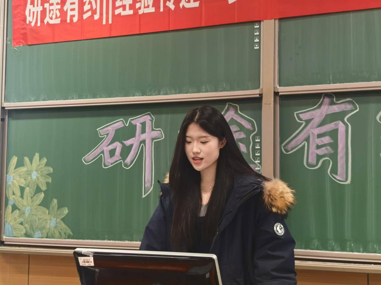 刘梦博从学业情况、课余活动和自身感受三个方面进行了经验分享。他以专业课的学习为出发,为同学们日后的学习规划提出了自己的一些建议。而后结合自身经历对在大学期间是否担任员工干部以及担任员工干部的进行了具体分析。在此期间他还倡导同学们积极投身社会实践,不断提升自身的综合素质。在回顾老员工活的点滴后,他特别强调了调整心态的重要性,并与同学们交流了自己在这一过程中积累的一些心得体会。