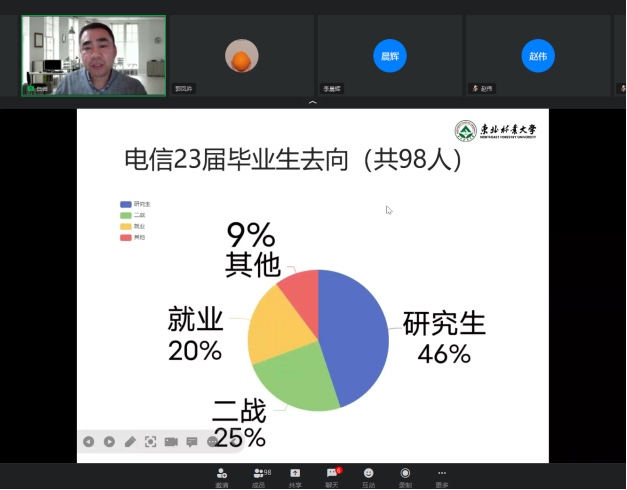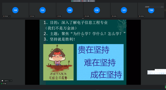 为了更有针对性地进行能力培养,提升员工工程实践能力,促进员工综合素质提高,指导员工就业,改善员工考研和就业观念,电子信息工程专业在5月10日晚召开了2020级、2021级年级大会。会议由专业副主任白岩主持,采用钉钉会议与腾讯会议联播的形式,专业主任邢键、副主任李明、相关班级的班导师、辅导员、20级和21级电信员工共计160余人参加了会议。